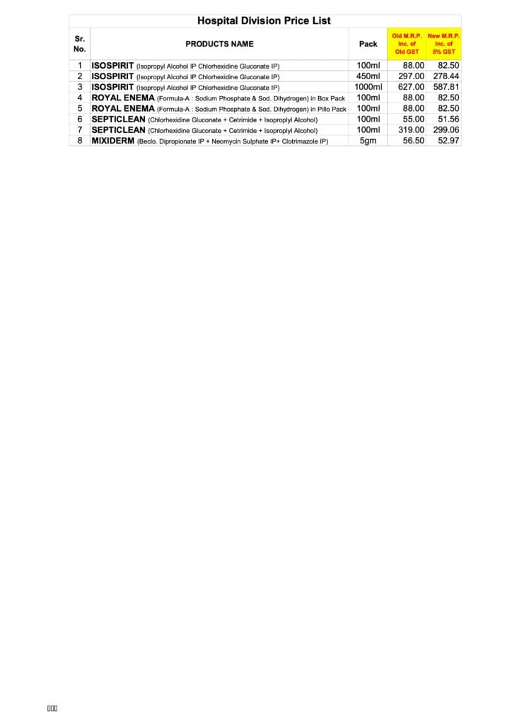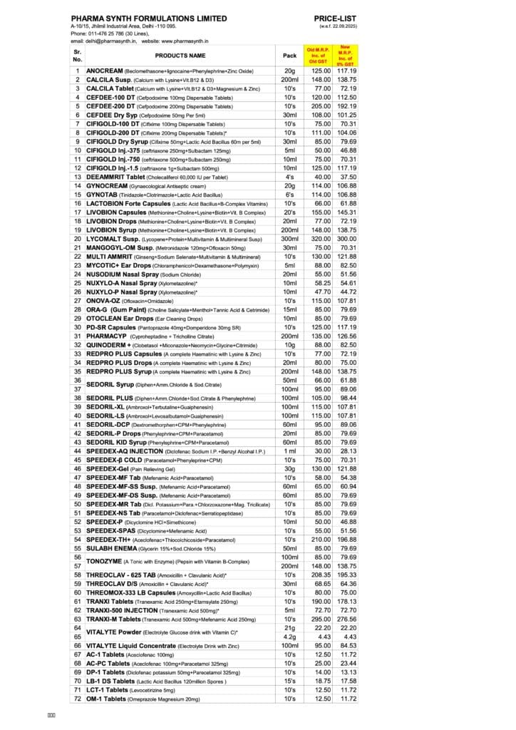 Price List (w.e.f 22.09.2025)